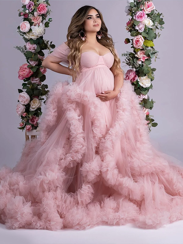 Vestido rosado de falda de tul abierta al frente (Sólo para estudio)